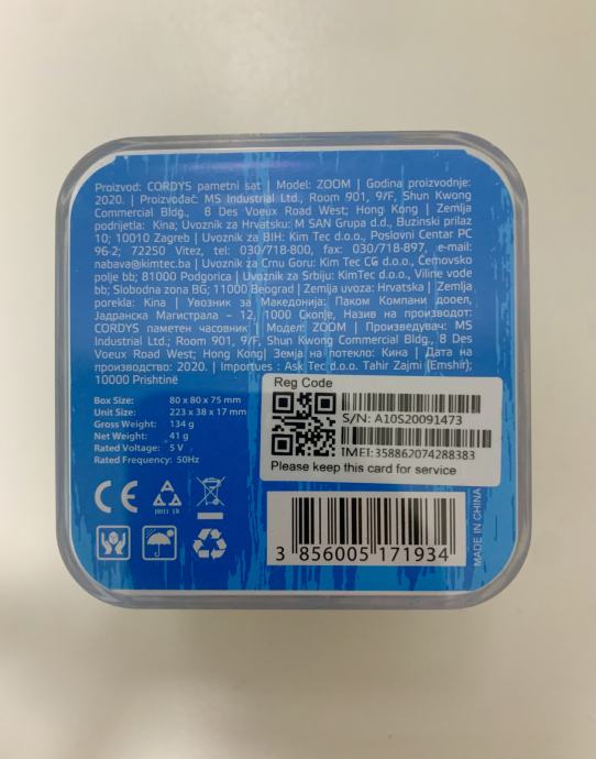 Pametan dječji sat Cordys Zoom, svjetlo plave boje, novi i nekoristen. Sa zaslonom na dodir u boji, s mnoštvom korisnih i sigurnosnih funkcija. Zastitna folija nije skinuta sa zaslona.