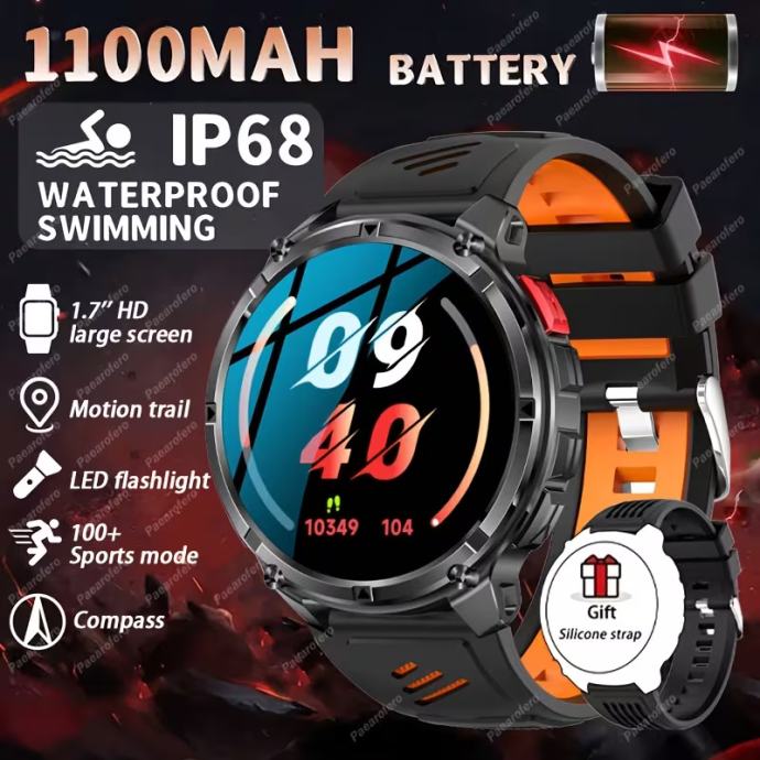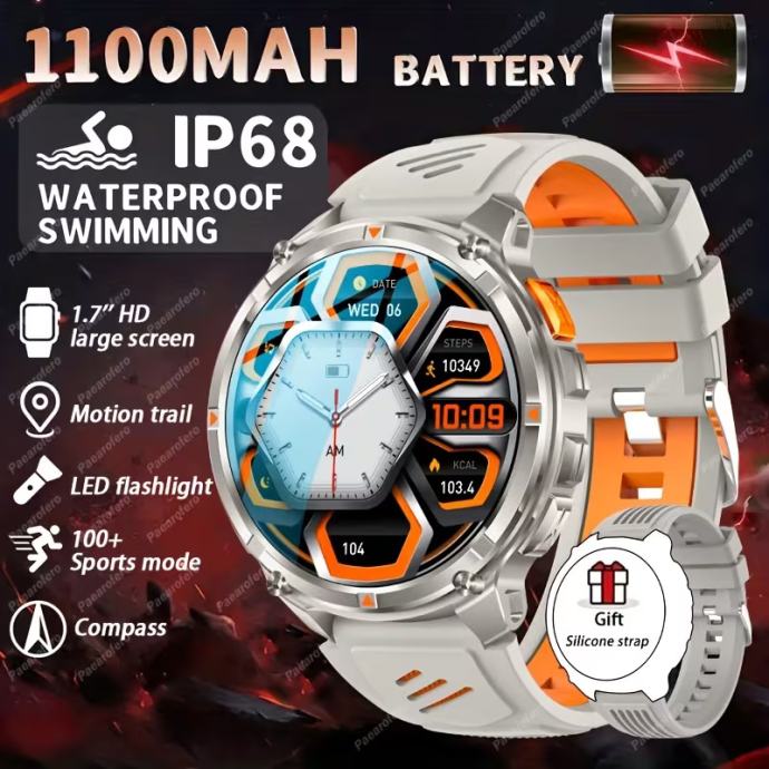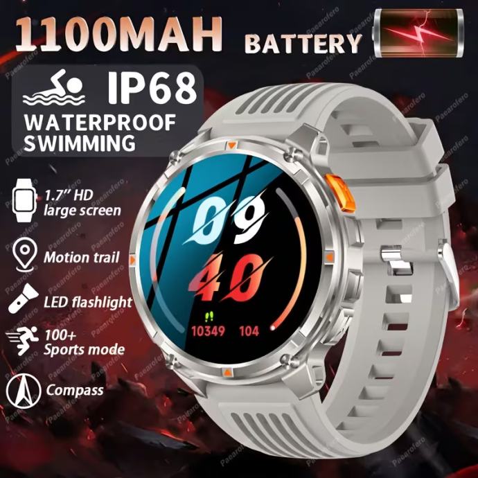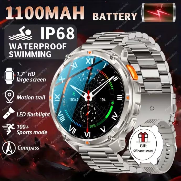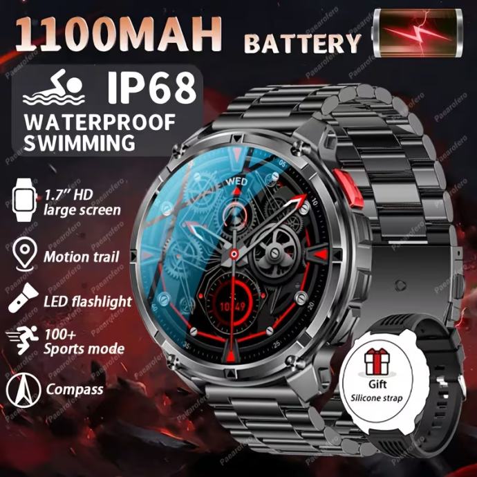 Pametni sat 2025. godine, 1,7-inčni HD zaslon, bežični poziv/odgovaranje na pozive, više od 100 sportskih načina rada, glasovni poziv, LED svjetiljka, dugotrajna baterija od 1100 mAh, sat za praćenje fitnessa, za iPhone i Android, fitness sat, sportski sat, poklon za muškarce.