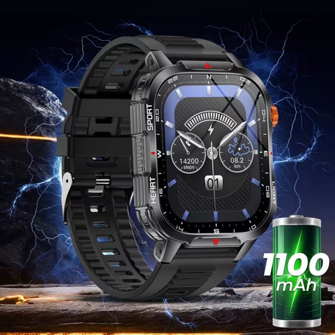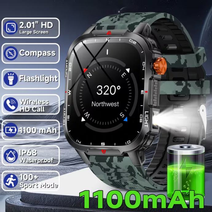 Pametni sat - baterija od čistog kobalta od 1100 mAh za više od 100 dana u stanju pripravnosti, kompas, HD zaslon od 5,11 cm, vodootpornost prema IP68 standardu, više od 100 sportskih načina rada, odgovaranje/upućivanje poziva, glasovni asistent, DIY brojčanici, LED svjetiljka - idealan pametni sat za ljubitelje fitnessa i aktivnosti na otvorenom