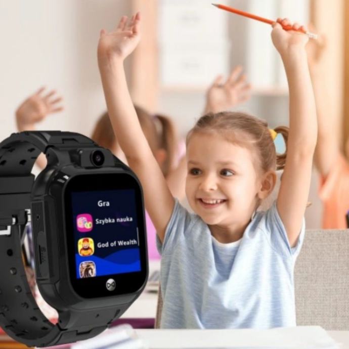 Pametni sat s GPS, SOS i video pozivima za djecu – crni