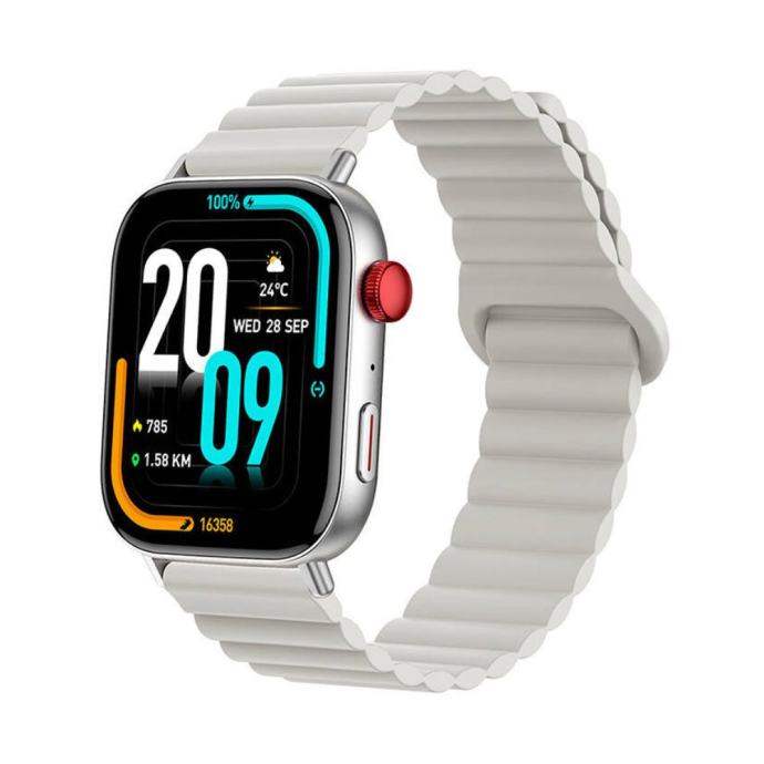 Sat dolazi s elegantnim magnetskim remenom koji omogućuje brzo i jednostavno zatvaranje, bez kopči i nepotrebnog kompliciranja. Veliki 1,83″ HD zaslon s ultra tankim okvirima pruža jasan prikaz u svim uvjetima, dok je kućište izrađeno od mat legure cinka, što mu daje dodatnu čvrstoću i sofisticiran izgled.
