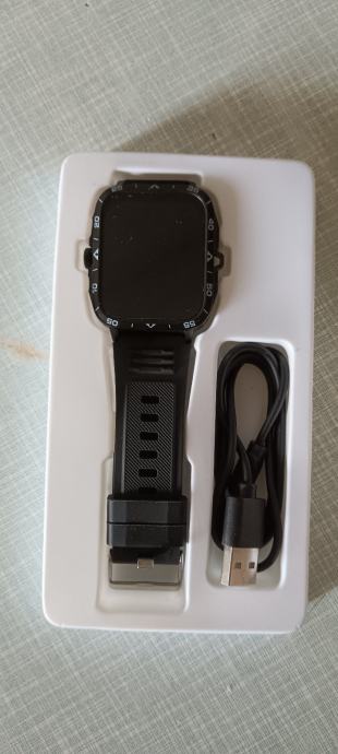 Potpuno novi pametni sat, još uvijek zapakiran i s etiketom. Modernog je dizajna s crnim remenom i digitalnim zaslonom. Sat dolazi u originalnom pakiranju sa svim pripadajućim dijelovima.
