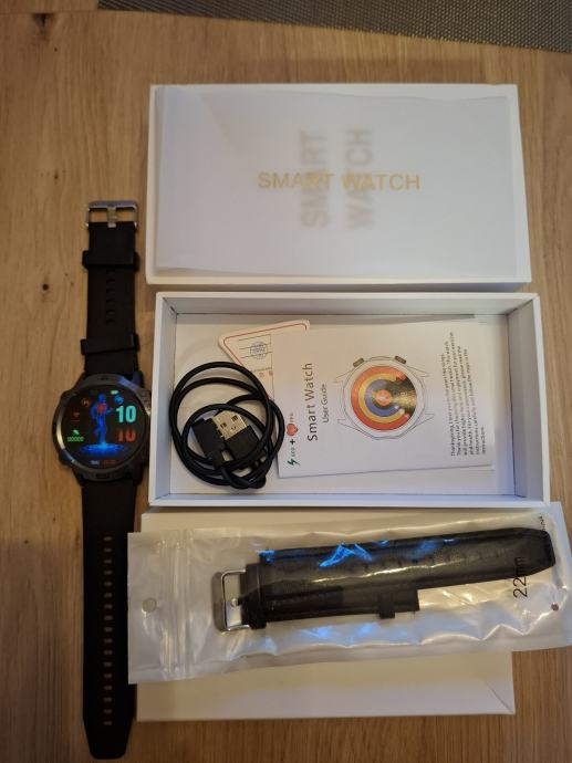 Pametni sat (smartwatch),potpuno ispravan i u jako dobrom stanju,plus dobije se dodatni kožni remen,ima dosta tih senzora koje mjere,od otkucaja srca,kisika u krvi,stres itd....