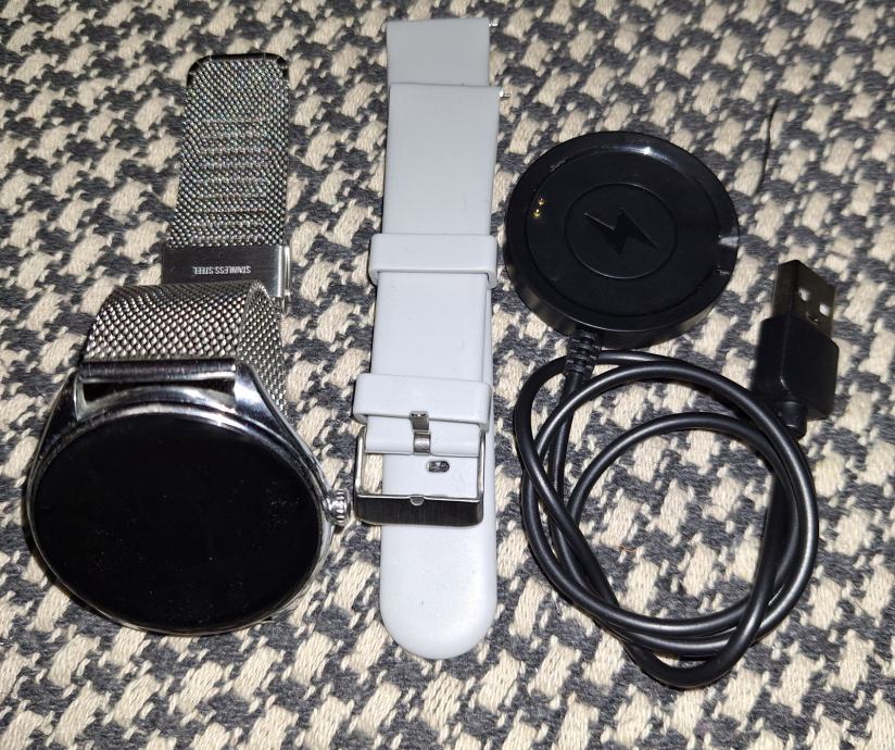 Prodajem pametni sat, smart watch, punjač, metalni remen i kožni, sa funkcijama: