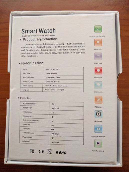 - Anti lost alarm - ukoliko je funkcija upaljena, alarm se upali kada se pametni sat i vas mobitel sa kojim je uparen preko Bluetooth tehnologije udalje izvan dometa (cca 10m) jedan od drugoga