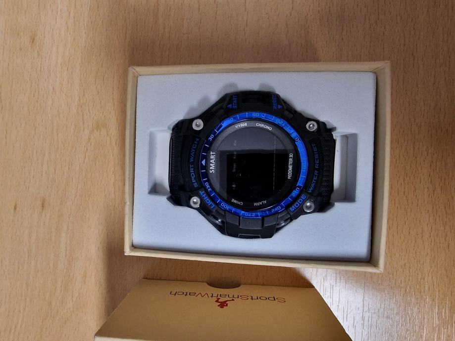 Pametni sportski sat, boja Ocean blue, kutija, mnoštvo raznih funkcija, Bluetooth spajanje. Kompatibilan sa Android i Apple iOS.