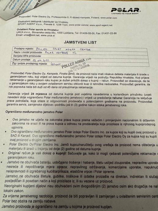 Prodaje se navedeni sat kupljen u polleo sportu 02.04.2022 ( garancija do 02.04.2024)