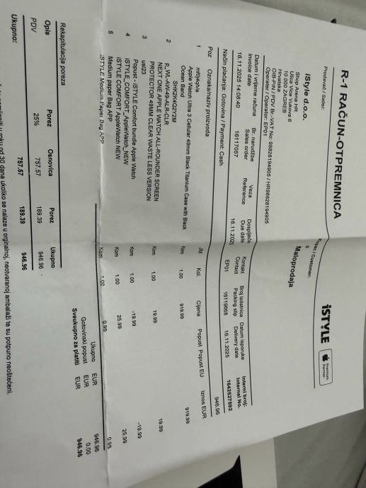 Prodajem Apple watch ULTRA 3, kupljen 16.11.2025. u Istyle-u. Sat je kao novi, odmah u ducanu je stavljena zastita ekrana te sam stavio i silikonsku zastitu kucista sata. Sve je ispravno i nema ostecenja.