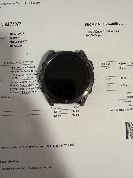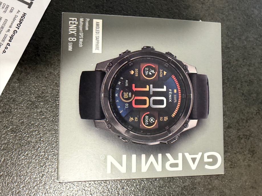 Prodajem Garmin Fenix 8 titanijum saphire 3x stavljen na ruku sa remenom koji je potpuno nov