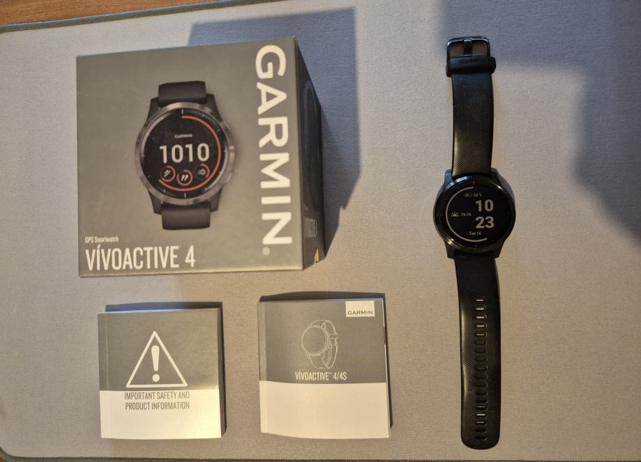 Prodajem pametni sat GARMIN VIVOACTIVE 4. Crni s tamnosivim metalnim dijelovima.Vodootporan 50 m. Veličina kućišta 45mm.