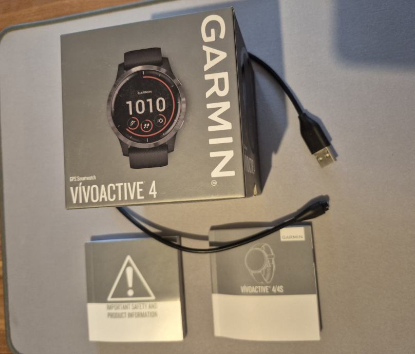 Prodajem pametni sat GARMIN VIVOACTIVE 4. Crni s tamnosivim metalnim dijelovima.Vodootporan 50 m. Veličina kućišta 45mm.