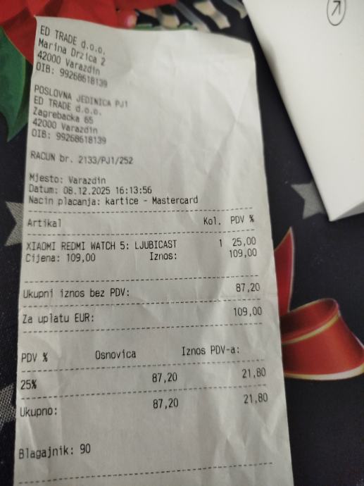 Prodaje se novi pametni sat redmi watch 5,nekorišten,sa računom i garancijom,ispod cijene.Kupljen za 109 eura,prodaje se za 90.