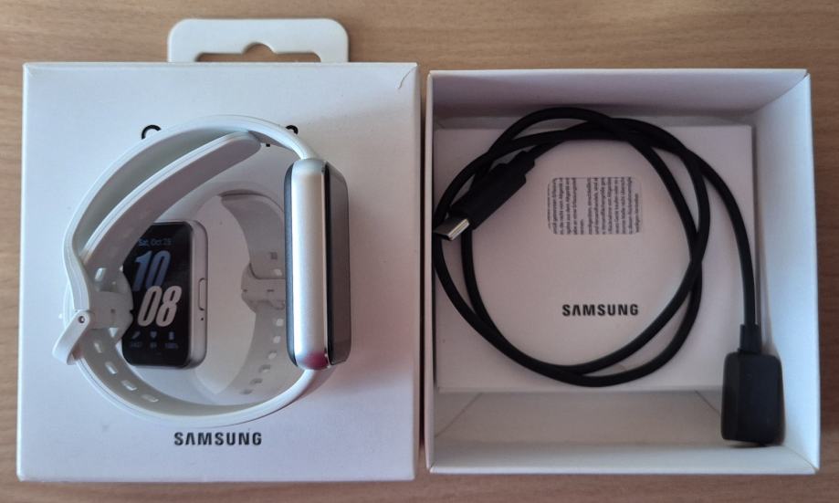 Prodajem Samsung Galaxy Fit3 pametni sat u sivoj boji. Sat dolazi s originalnim silikonskim remenom i kablom za punjenje. Ima pravokutni zaslon s mogućnošću praćenja aktivnosti i zdravstvenih podataka. Sat je svega par puta nošen.