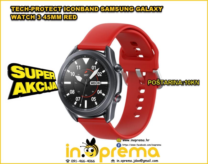 NARUKVICA REMEN SAMSUNG GALAXY WATCH 3 45MM 45 MM REMEN 22MM CRVENA POSTARINA 10 KN 091/466-4066