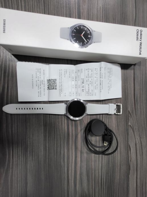 Prodajem Samsung Galaxy Watch 4 classic 46mm u srebrnoj boji. Uređaj je kupljen u Elipsu 11.01.2022. Nošen par puta, doslovno nov bez bilo kakvog traga korištenja. Prije sam koristio Garmin Fenix i jednostavno mi ne paše pa se i prodaje zbog kupnje novog Garmina. Sa satom dolazi sve što je i došlo kutija, papiri, kablovi, račun. Preferiram osobnu primopredaju i to je moguće na području Čakovca, Varaždina, Koprivnice. Cijena je 2099kn, a kontakt na nikola.simunic1980@gmail.com ili na 099/2299527 (može SMS, Viber, Whatsap).