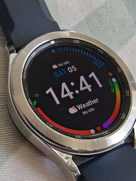Potpuno funkcionalan pametni sat. Manje ogrebotine na okviru sata od standardnog svakodnevnog korištenja. Baterija je već sada malo slabija, ali izdrži još cijeli dan.