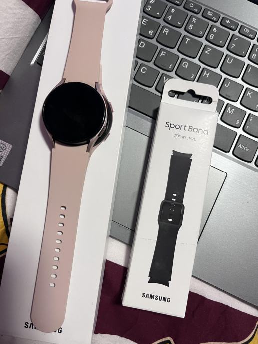 Prodaje se novi Samsung Galaxy Watch 4 pink gold s dodatnim crnim remenom.