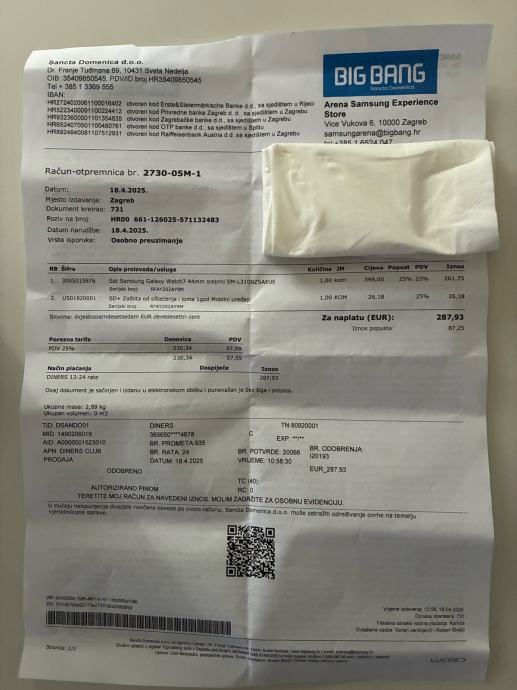 Samsung Galaxy Watch 7, 44 mm, srebrni, kupljen u Samsung Experience store 18.4.2025. Bez tragova nošenja.
