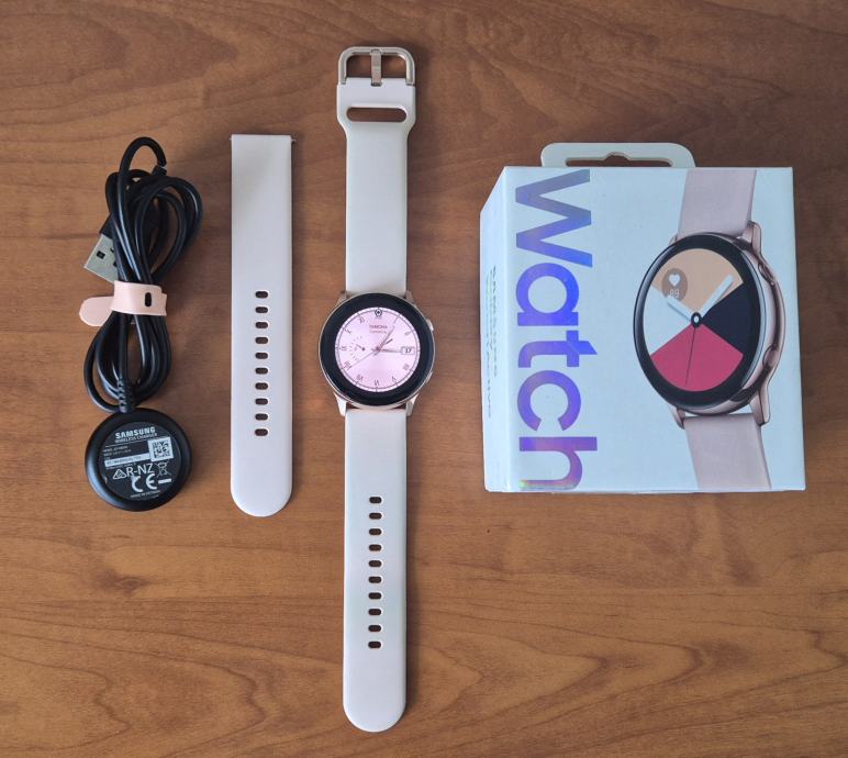 Prodaje se pametni sat Samsung Galaxy Watch Active 2 Bluetooth 40mm Rose Gold (SM-R500) Sat je u potpunosti ispravan. Dolazi s kutijom i bežičnim magnetnim punjačem. Original narukvica u dvije dužine.