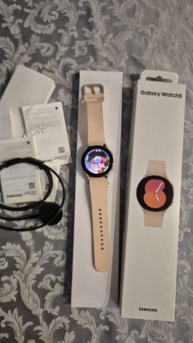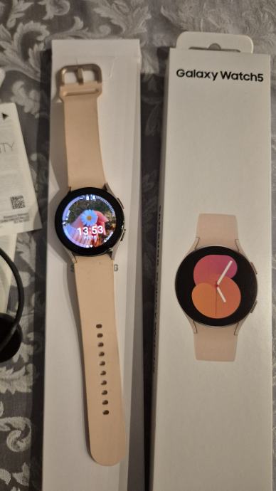 Samsung Galaxy Watch5, 40 mm. Pink gold, u orginalnoj kutiji sa uputama i punjačem. Očuvan i bez oštećenja.