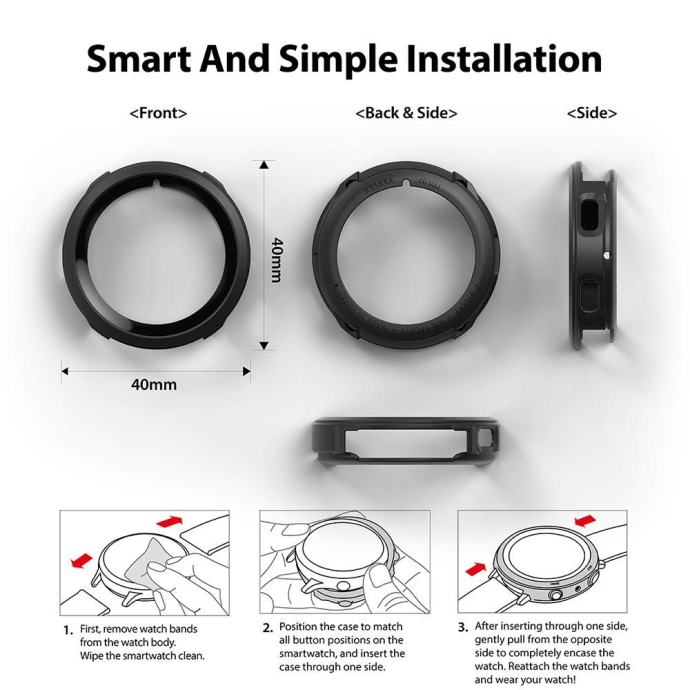 Ringke Air za Samsung Galaxy Watch izuzetno je lagana i tanka zaštitna futrola (samo 1,3 mm). Izrađen od mekog i izdržljivog TPU materijala, koji osigurava savršeno prianjanje uz sat uz zadržavanje izvornog dizajna uređaja.