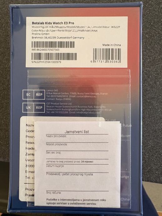 Prodajem potpuno novi pametni sat za djecu Botslab Kids Watch E3 Pro s etiketom. Sat ima 4G podršku koja omogućava povezivanje i komunikaciju. Opremljen je GPS senzorom za praćenje lokacije, SOS funkcijom za hitne situacije, mogućnošću zaključavanja sata te sigurnim chatom. Dodatno ima brojač koraka i praćenje povijesti kretanja.