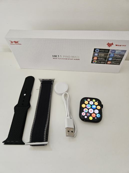 HK11 Pro Max je vrhunski pametni sat s 2,02-inčnim AMOLED zaslonom visoke rezolucije (485x520 piksela), idealan za svakodnevnu upotrebu i sport.