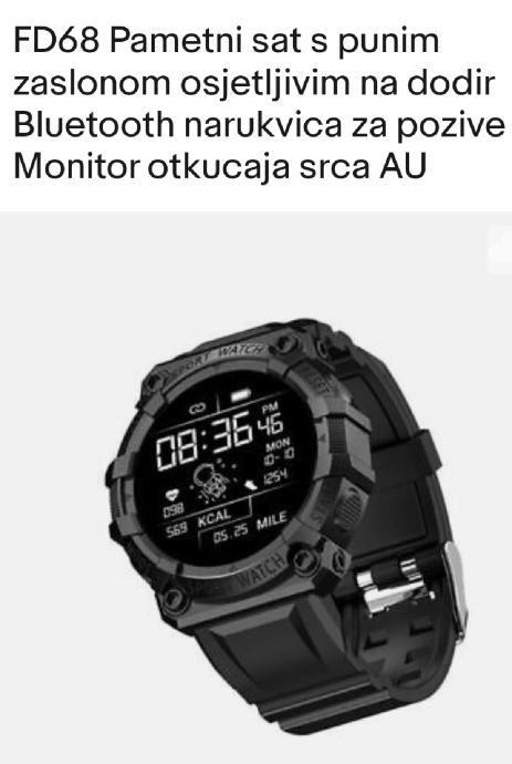 SMARTWATCH BLUETOOTH SPORT, MODEL FD68S, potpuno nov, ultra laki pametni sat, Display: 1.3, 240x240; Chip/GPU: ARM32 Cortex-M0, ROM/RAM 64 MB, Bluetooth 5.0, App Support IOS 9.0 Android OS Waterproof/vodootporan, sa multifunkcionalnim opcijama: ( alarm/sat, kalendar, imenik, praćenje rada srca, utrošak kalorija, slip monitor, brojanje koraka, poruke, kamera i mnoge druge )!