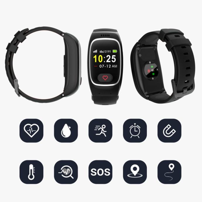 Radi uz pomoć SIM kartice te mu nije potrebno spajanje na WLAN ili drugi mobilni uređaj. SOS sat omogućava da provjerite krvni tlak, otkucaje srca, dnevni broj koraka, gdje se stariji nalaze, nazovete ih i da čujete što se događa oko njih! Ako su u opasnosti pomoću SOS sata mogu vas nazvati ili aktivirati SOS funkciju.
