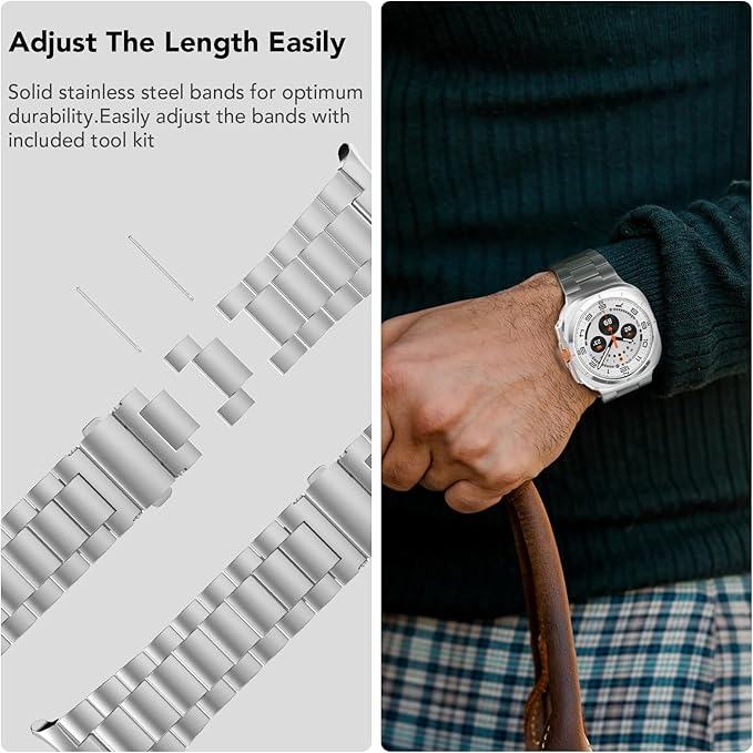 Prodajem potpuno novu, nekorištenu SPGUARD metalnu narukvicu od nehrđajućeg čelika, kompatibilnu isključivo s Samsung Galaxy Watch Ultra 47mm (model 2024).