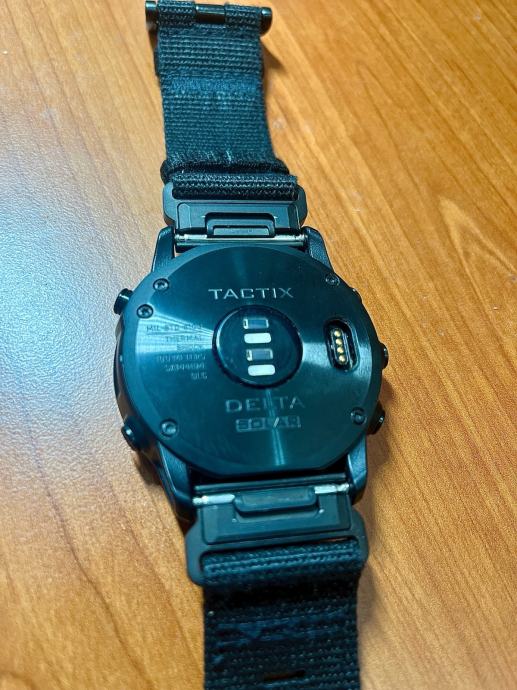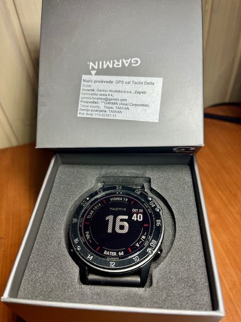 GARMIN TACTIX DELTA SOLAR GPS sat: original pakiranje, bez oštećenja (vidljivo na fotkama), malo nošen, sa tri remena (crni silikonski, crni najlonski-taktički i metalni-titanijum) uz pripadajući kabel za punjenje i prijenos podataka, Sapphire staklo, zaslon u boji, baterija u izvrsnom stanju (20-ak i više dana uz solarno punjenje, GPS način rada s maksimalnim trajanjem baterije: do 120 sati / 148 sati uz solarno punjenje).…povoljno prodajem s obzirom na stanje sata i cijenu novog, a koja iznosi - 1099,99€….