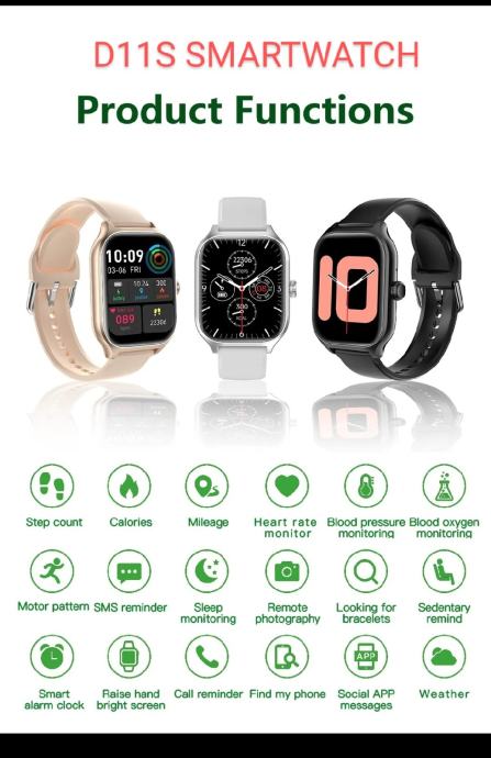 Pametni sat, SMART D11S pruža niz vrlo interesantnih i prije svega korisnih funkcija u svakodnevnom životu i radu, te sportsko rekreativnim aktivnostima!
