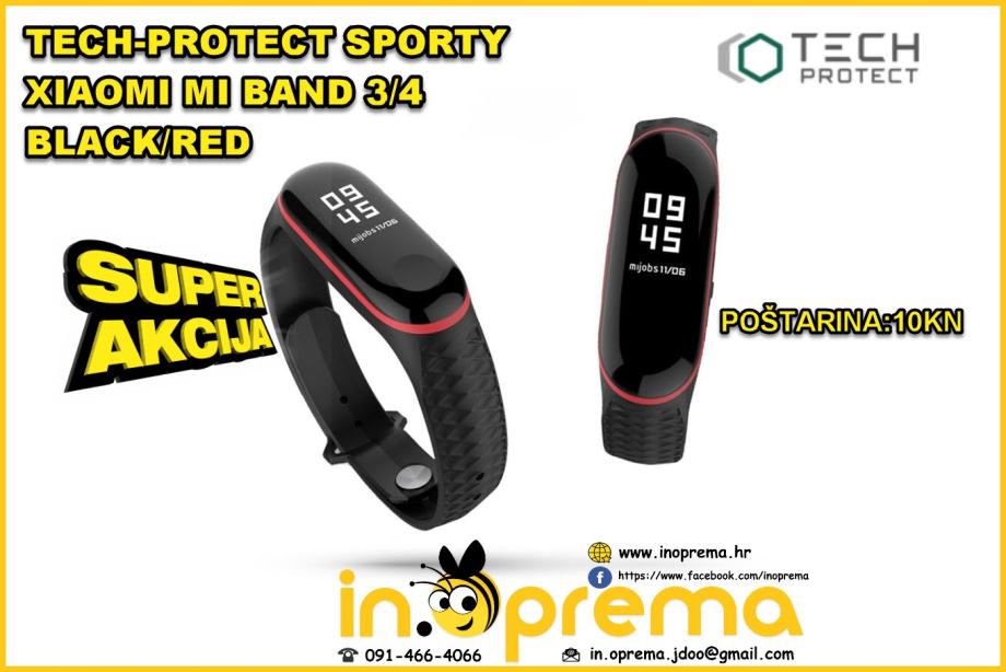 TECH-PROTECT SMOOTH narukvica za XIAOMI MI BAND 3/4 crno/crvena