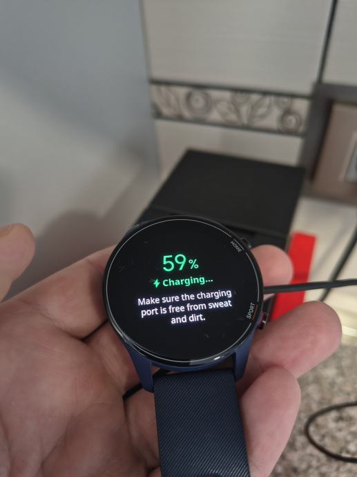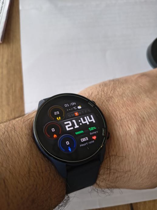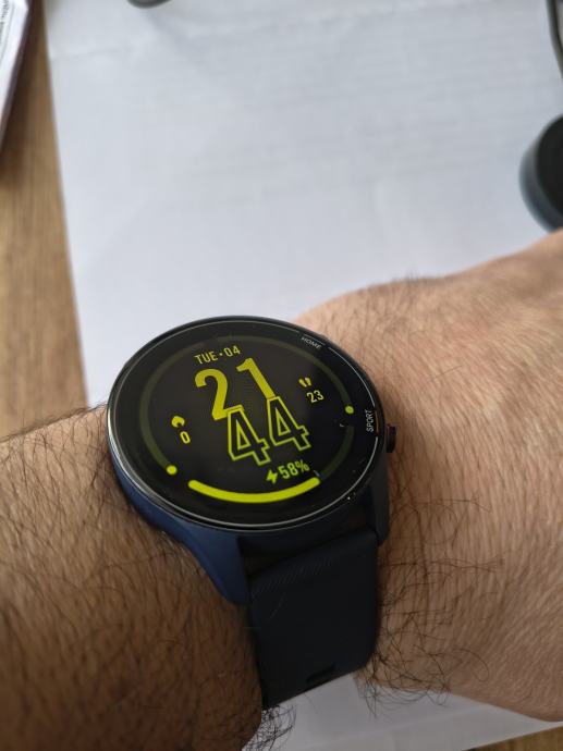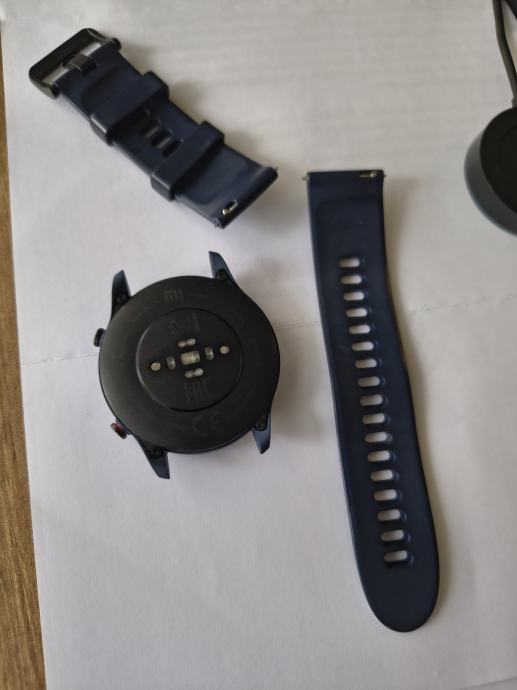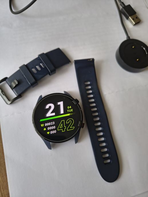 Sat bez ogrebotine, normalno korišten uredan i čist, vodootporan. Dobio na poklon drugi, novi. Oštar Oled displej, čitljiv po suncu i svim uvjetima. Baterija traje oko 7 dana. Plavi, tamno plave boje. Mekana rebrasta tpu narukvica 22mm, lako zamjenjiva. Preko aplikacije dosta različitih pozadina i izgleda sata.