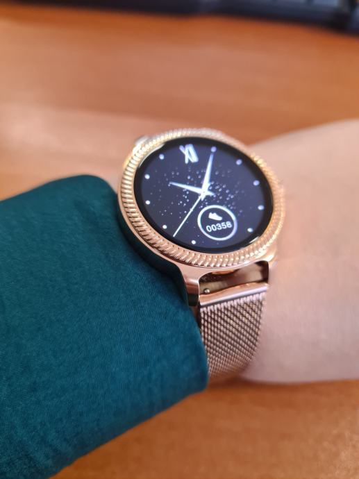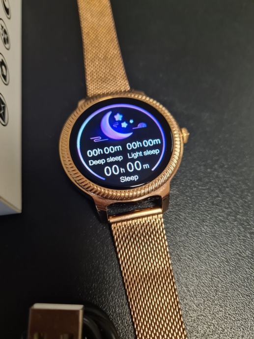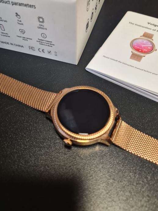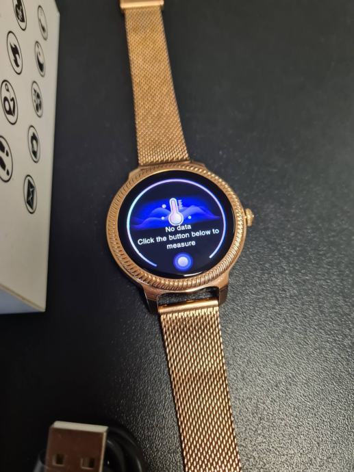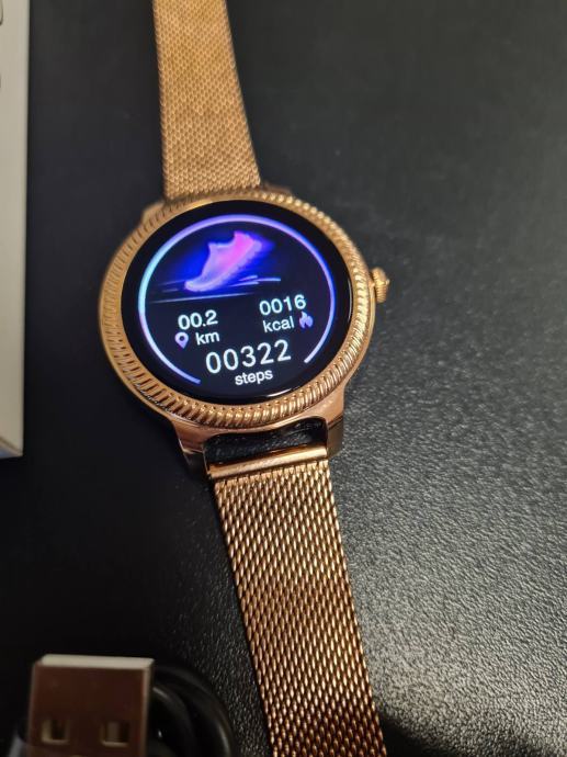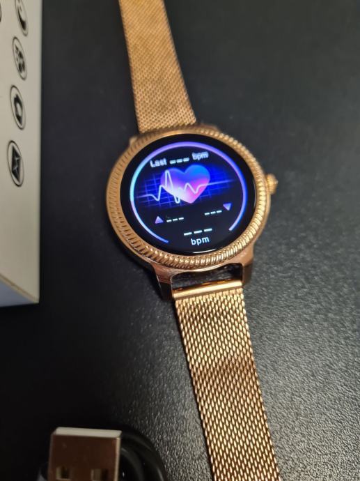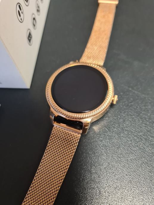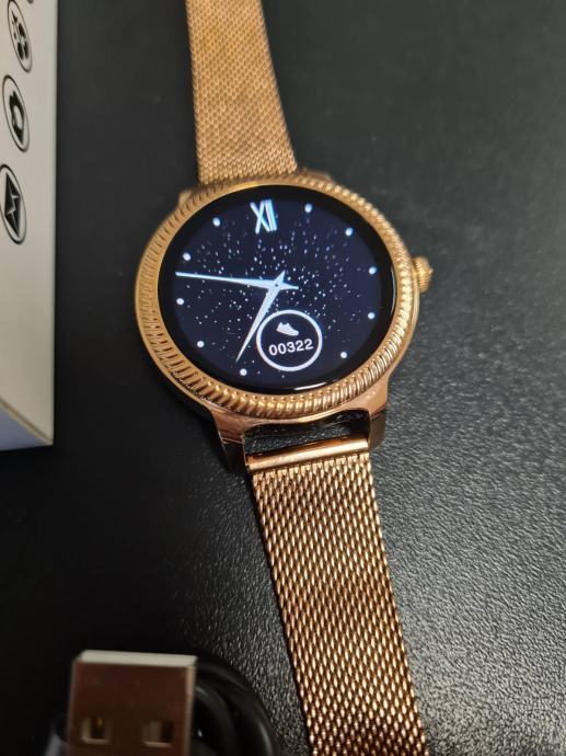 - prodajem novi zlatni model smartwatcha za žene sa metalnim nehrđajučim remenom i kućištem