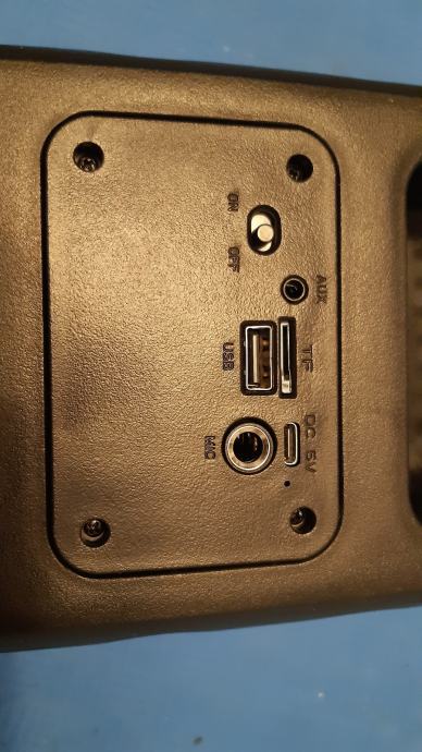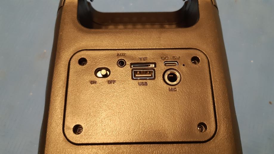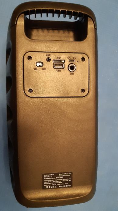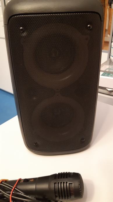 Zvučnik s mikrofonom za pjevanje, reprodukciju glazbe. Zvučnik spunjivom baterijom, samo stojiv, lagan, prenosiv, ugrađeni razni efekti, jeka, chorus, led rasvjeta u ritmu.
