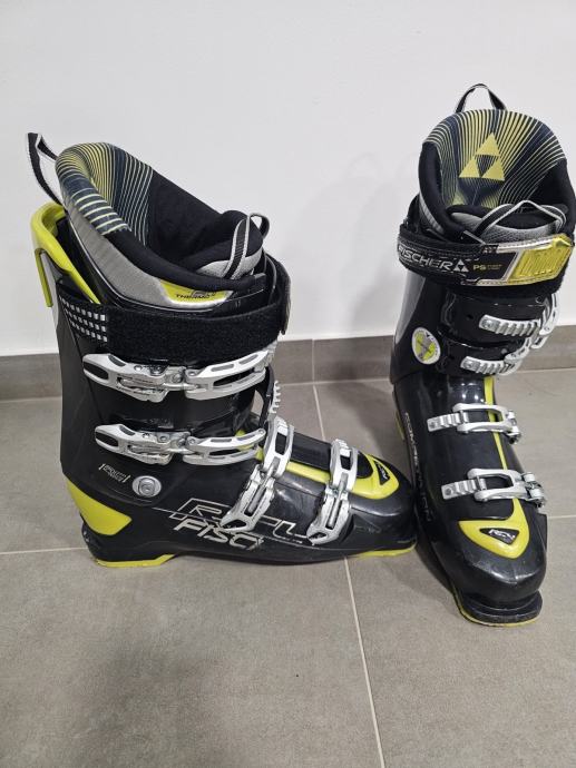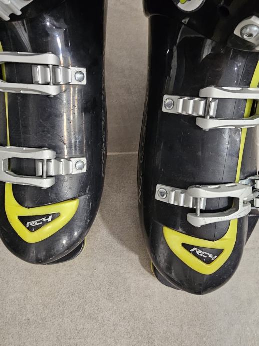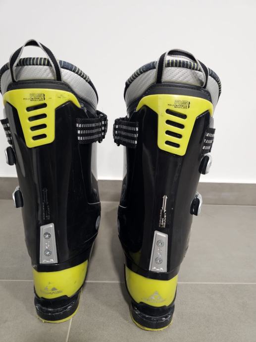 Prodajem Fischer muške skijaške pancerice u crno-žutoj kombinaciji boja. Pancerice imaju četiri kopče za podešavanje i pružaju podršku stopalu i gležnju. Ljuska je crne boje s žutim detaljima, a postava ima grafički uzorak. Sve kopče su funkcionalne i sigurno zatvaraju. Model RC4 s oznakom 130.