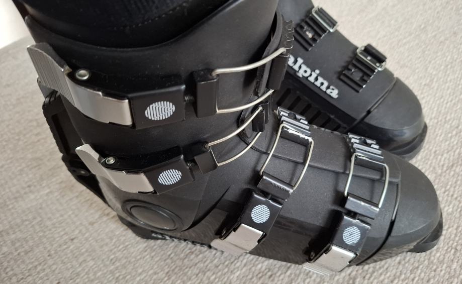 Prodajem očuvane pancerice Alpina veličine 41-42 (MONDO 27,5 cm) u crnoj boji. Pancerice su u dobrom stanju s funkcionalnim kopčama i čvrstom konstrukcijom. Idealne su za rekreativno skijanje i nude odličnu podršku za nogu.