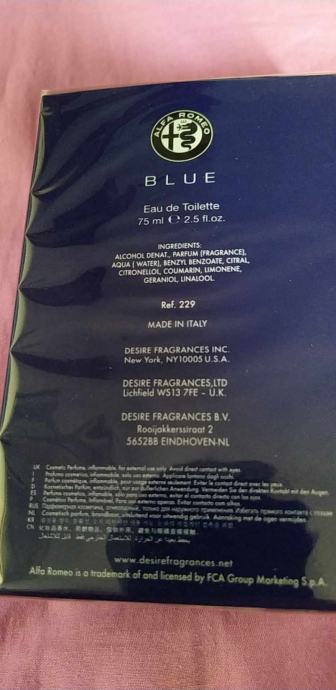 EAU de toilette.75ml.blue.zapakovan.iz italije.idealno za alfisteblue.ilo GDI.ljubitelji alfe.samo za VAS.alfisti I alfistice