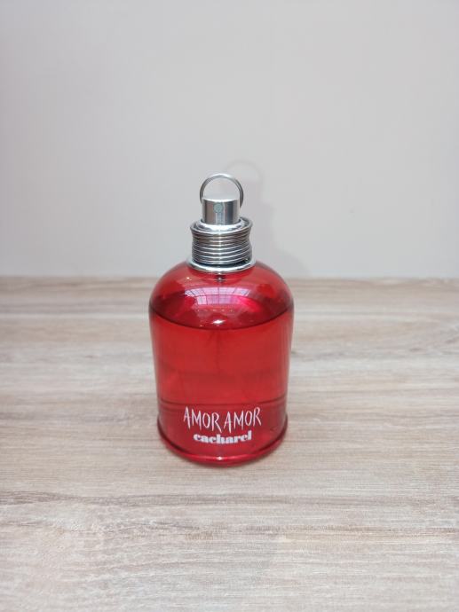 Kultni AMOR AMOR Cacharel Eau De Toilette 100 ml, kreiran 2003. godine. Gornje note: bergamot, grejp, kajsija, mandarina, ribizla. Srednje note: jasmin, ljiljan, marelica, ruža, đurđica. Bazne note: ambra, cedar, jantar, mošus, vanilija. Ne sadrži: aceton, amonijak, ftalate, komedegon, paraben, parafin, pigmente i boje, silikone, konzervanse, palmino ulje, sulfate, uljne sastojke. Veganski proizvod. Šprican par puta. Višak u kolekciji duplića. Cijena novog skoro 100€.
