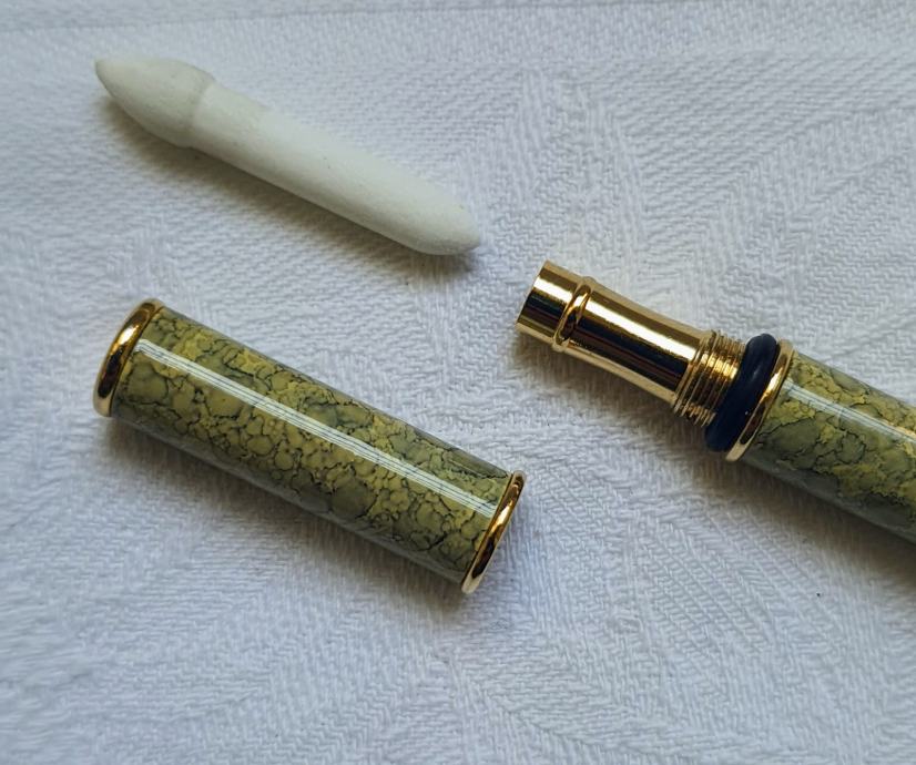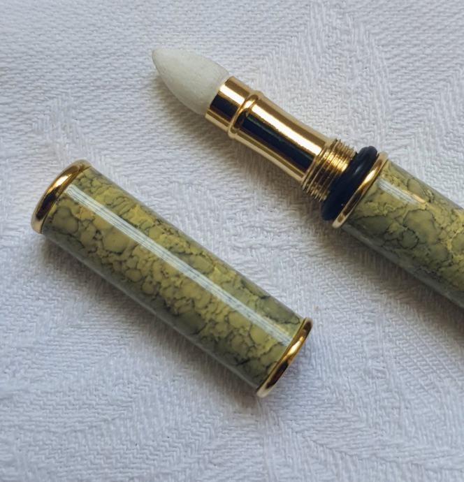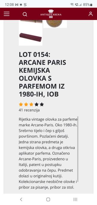 Krasan kolekekcionarski primjerak za upotrebu parfemska boca u obliku kemijske olovke koja se napuni parfemom unutar je kao nekakva vatica koja se natopi pafremkm a gore roll on mekan a opet čvrst