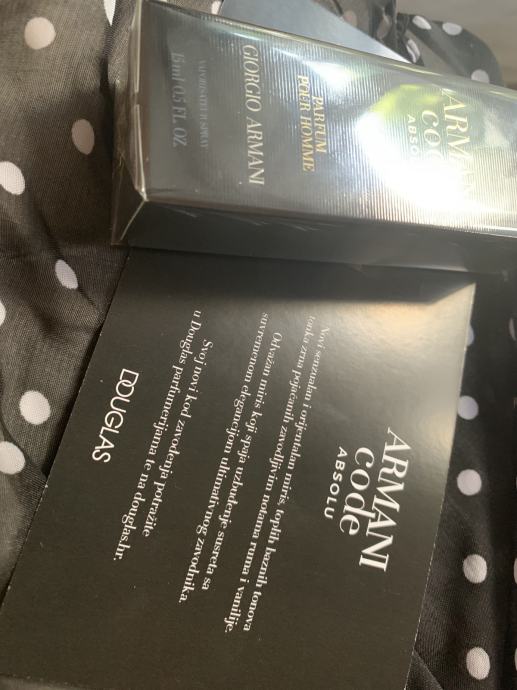 NOVI, originalni muški parfem Armani Code Absolu - dobiven na poklon na Douglas eventu, još uvijek zapakiran, dolazi s originalnom Armani vrećicom. Pakiranje je posebno - manje, 15 ml, zbog čega je i cijena povoljnija.