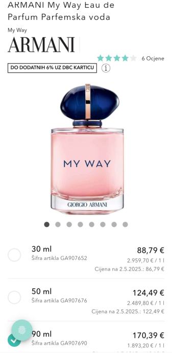 Armani My Way parfemska voda, 90ml boca, pola fali, original iz Douglasa, 35e Zagreb