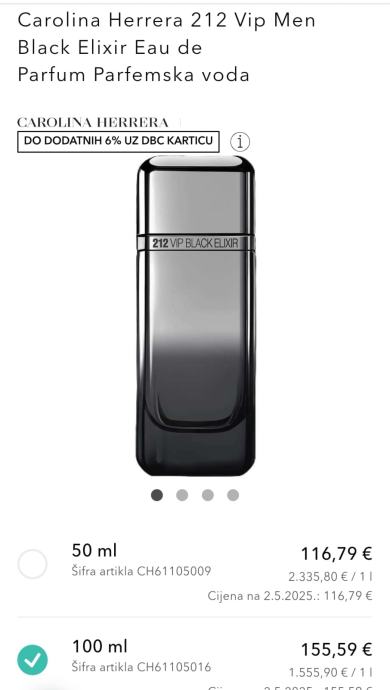 Carolina Herrera 212 vip men, 100ml, pun, samo isproban, original iz Douglasa, 65e Zagreb