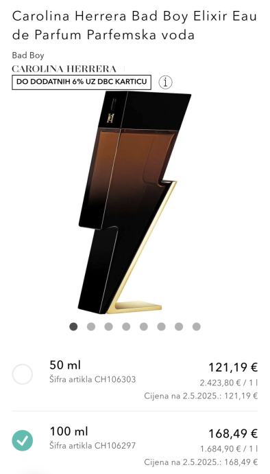 Carolina Herrera Bad Boy elixir eu de parfem, 100ml, pola boce, original iz Douglasa, 45e