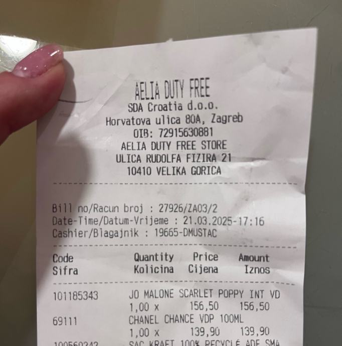 Original parfem, kupljen na Zagrebačkom aerodromu za 139 EUR. Račun je među slikama.