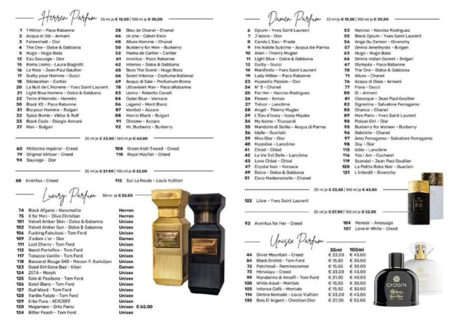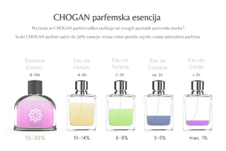 Chogan parfemi su inspirirani notama najpoznatijih svjetskih brendova, te sadrže 30% esencije, što ih čini intenzivnijim i dugotrajnijim od svih ostalih parfema.