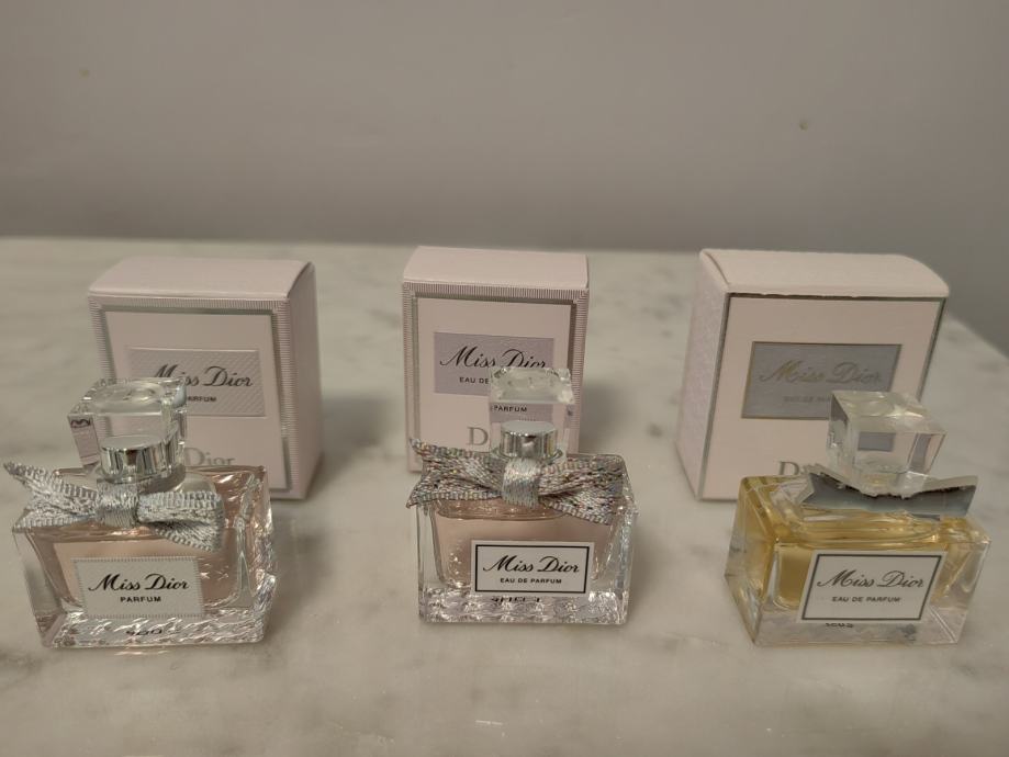 Tri Diorove različite minijature u setu.S kutijama,potpuno nove.