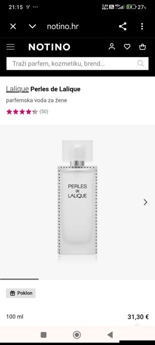 Prodajem parfem Perles de lalique, 100 ml bočica (ima više od pola). Note su bujne, opojne, ženstvene i vrlo zavodljive. Bugarska ruža blista svojim slatkim i začinjenim nijansama. U srcu je nota senzualnog i puderastog irisa milovanog burbon paprom koji nudi val moderne boje koja prelazi u pačuli i mošus. Nota kasmira odaje mu elegantan i profinjen karakter.