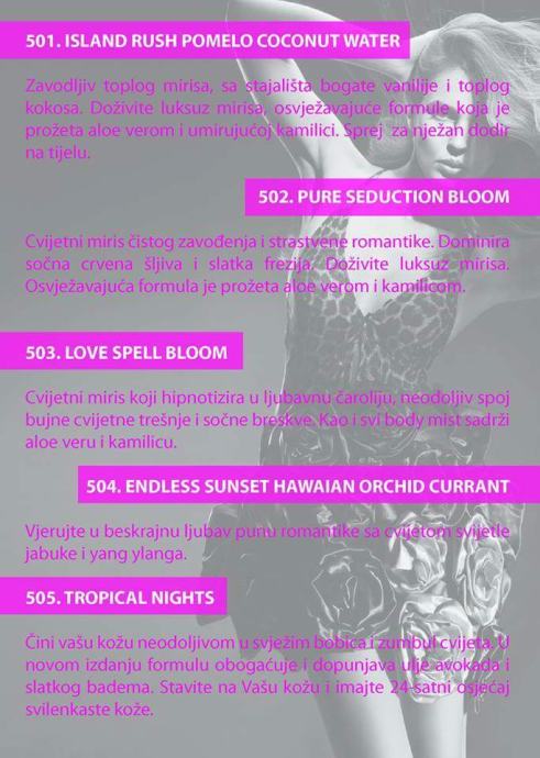 U ponudi još imamo i Body care liniju(kreme i losioni za tijelo)te Body mist tj.osvježivač za tijelo.